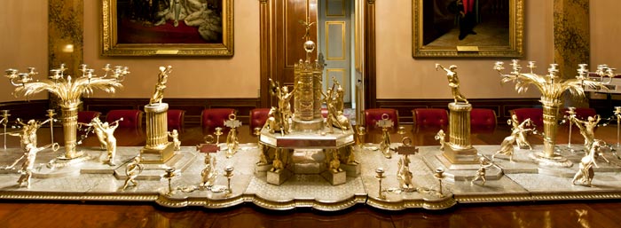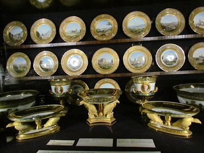 Apsley House is a beautiful home, full of portraits of Wellington and his cronies and important statesmen of the time. (Did you know he and Napoleon were born the same year?) I have a feeling Wellington actually admired Napoleon’s military acumen, in spite of his determination to thwart the man’s ambitions to rule the world. I’ve seen a lot of beautiful homes this summer, and I love to savor each and every piece, but the one thing that really impresses me about Apsley House is the numerous, extravagant gifts that were pressed upon the Iron Duke from grateful statesmen all over the world. The priceless silver pieces, the china and porcelain, the furniture, the sculptures—this extraordinary man did the world a tremendous favor by managing to stop the most cunning, determined, and ambitious man anyone of the time had ever seen.
