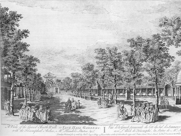 J.S. Muller after S. Wale, The Walk of Triumphal Arches and the Statue of Mr. Handle in Vauxhall Garden, engraving, 1751 (British Library, London).