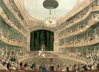 The Amphitheatre at Westminster bridge has, within these twelve years, been twice destroyed by fire; and the expence of rebuilding, & c. &c. to Messrs. Astleys, the two proprietors, has been estimated as amounting to nearly thirty thousand pounds. The present theatre is the most airy, and in some respects the most beautiful, of any in this great metropolis. The building is one hundred and forty feet long; the width of that part allotted to the audience, from wall to wall, sixty-five feet; and the stage is one hundred and thirty feet wide, being the largest stage in England, and extremely well adapted to the purpose for which it was built, the introduction of grand spectacles and pantomimes, wherein numerous troops of horses are seen in what has every appearance of real warfare, gallopping to and fro, &c. &c. The whole theatre is nearly the form of an egg; two thirds of the widest end forms the audience part and equestrian circle, and the smaller third is occupied by the orchestra and the stage. From this judicious arrangement, the whole audience have an uninterrupted prospect of the amusements. It is lighted by a magnificent glass chandelier, suspended from the center, and containing fifty patent lamps, and sixteen smaller chandeliers, with six wax-lights each. The scenery, machinery, decorations, &c. have been executed by the first artists in this country, under the immediate direction of Mr. Astley, jun. who made the fanciful design.