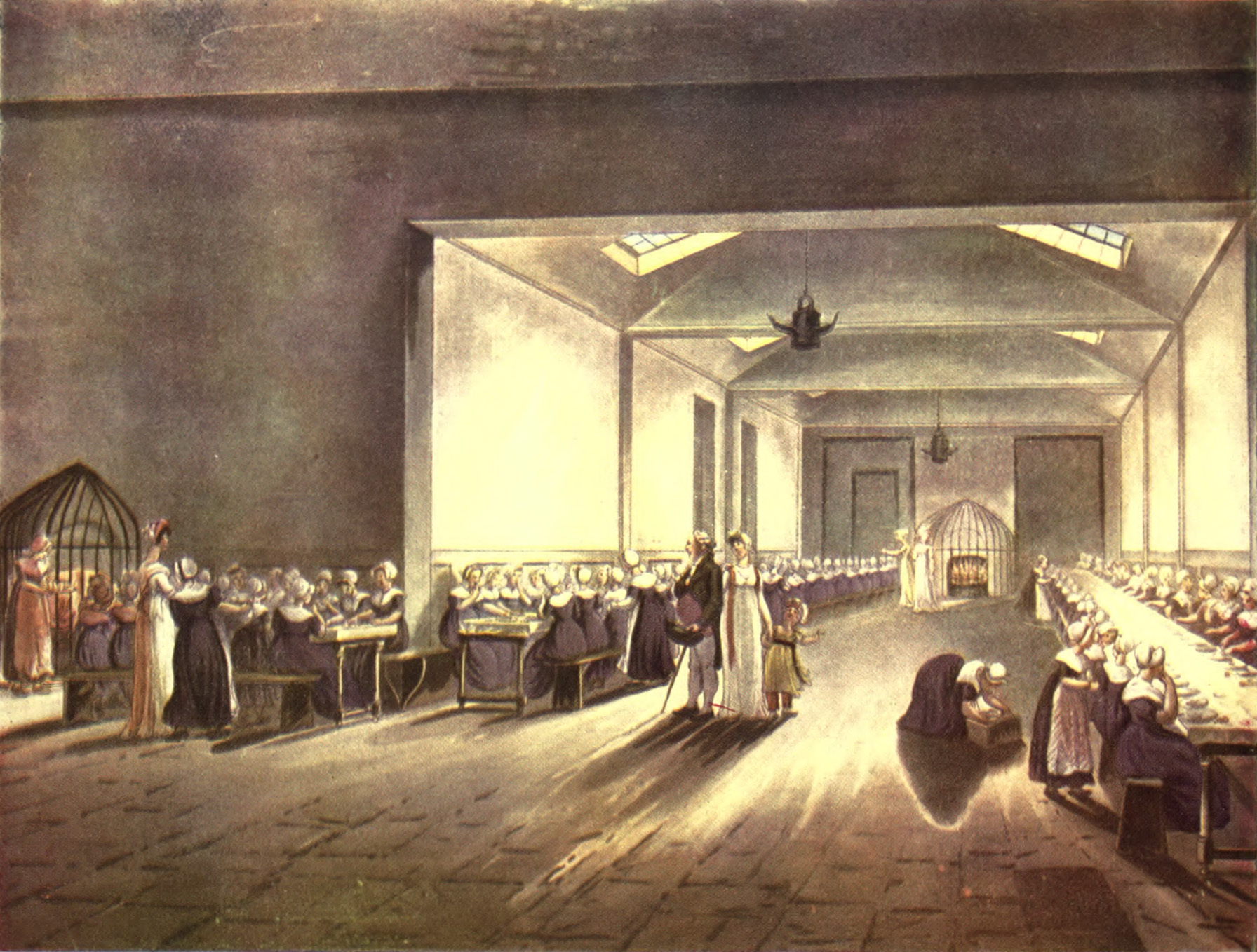 The children are to make and mend their own linen; make shirts, shifts, and table-linen; to do all kinds of plain needle-work, and to perform the business of the house and kitchen; to which latter twelve are appointed weekly, according to their age and abilities, to assist the cook, to wash, iron, and get up all the linen. They are likewise taught to read the Bible, write a legible hand, and understand the first four rules in arithmetic.