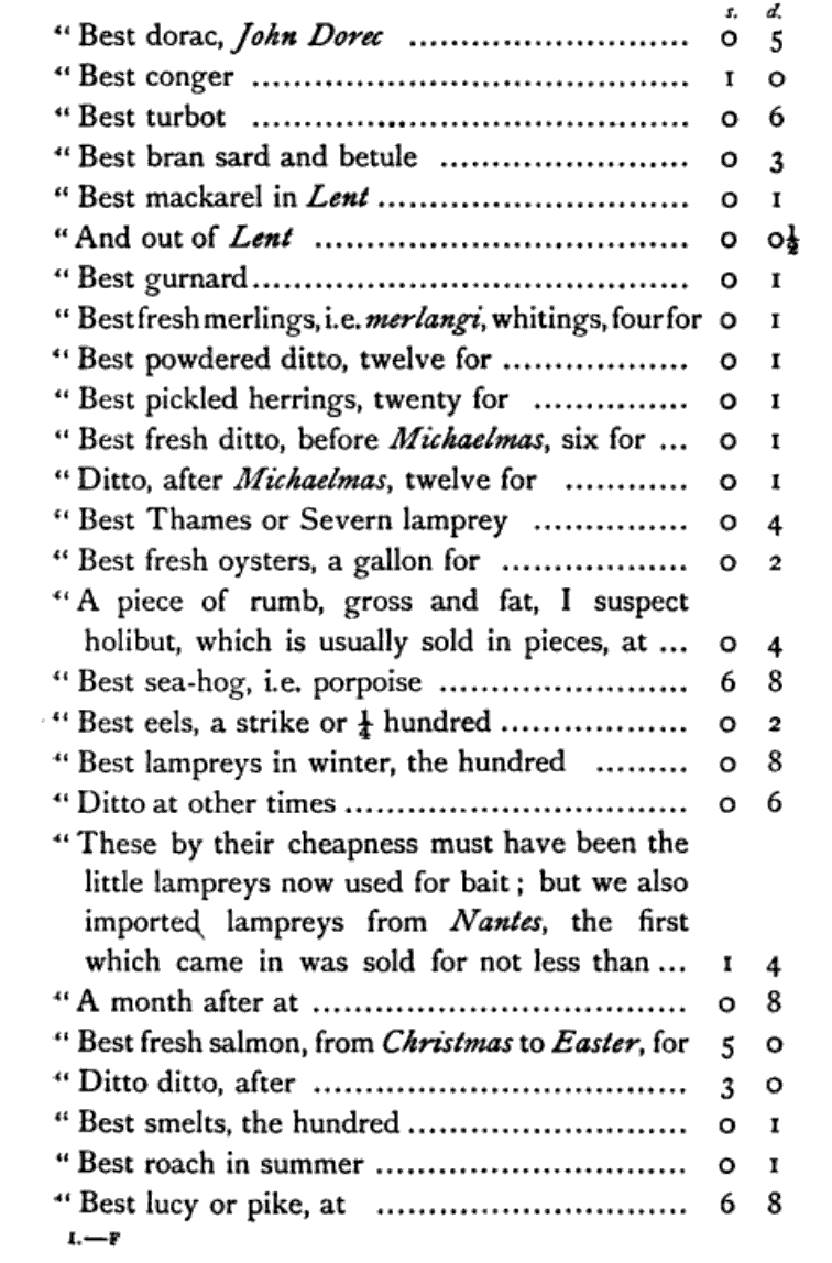 Moreover to him belong, by law and custom, all fines and forfeitures of all transgressors at sea, on the seashore, in ports, and from the first bridge on rivers towards the sea; also the goods of pirates and felons, condemned or outlawed; and all waifs, stray goods, wrecks of sea deodands; a share of all lawful prizes, lagon, jetson, flotson; that is, goods lying in the sea, goods cast by the sea on the shore, not granted formerly, or belonging to lords of manors adjoining to the sea; all great fishes, as sea-hogs, and other fishes of extraordinary bigness, called royal fishes, whales only and sturgeons excepted.